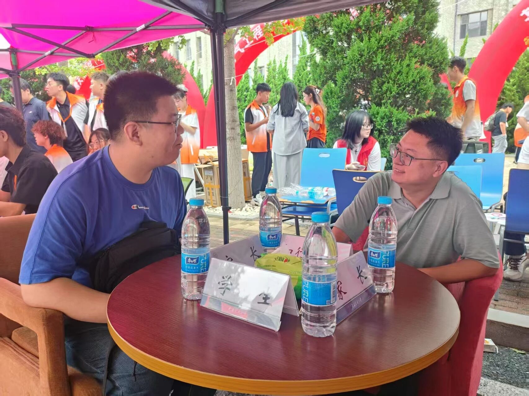 从学长学姐穿梭校园的引导背影
