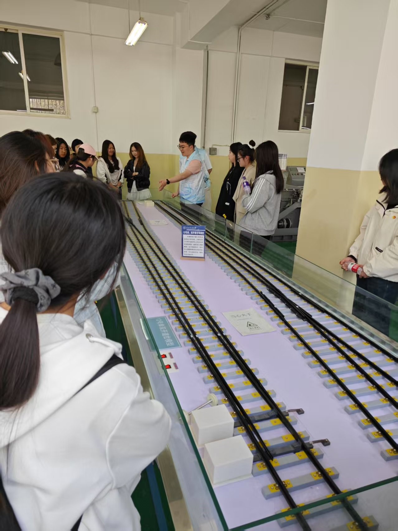 走出校史馆,同学们来到南区轨道交通实验实训中心,开启一场充满科技感的学习之旅。信号控制、车辆构造等模拟设备的运作演示,将理论知识具象化。闪烁的信号灯、精密的车辆结构,让大家近距离感受到轨道交通系统的复杂与精妙。最令人兴奋的是模拟驾驶体验环节,仿佛置身真实的驾驶场景,在实践操作中体会到轨道交通驾驶的魅力与责任。